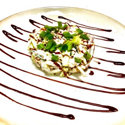 Состав : соус на основе деми-гляс , томленные в красном вине говяжьи щёчки , картофельное пюре , сливки, сливочное масло, жаренный бекон , жаренный лук. ВРЕМЯ ПРИГОТОВЛЕНИЯ 40 минут